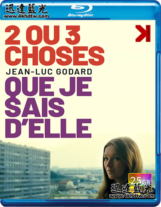 音軌:法語DTS-HD 2.0/法語DTS-HD 2.0 字幕:法/中簡/中繁 導演: 讓-呂克·戈達爾 編劇: Catherine Vimenet / 讓-呂克·戈達爾 主演: 安妮·杜普蕾 / 瑪麗娜·維拉迪 / Joseph Gehrard 類型: 劇情 / 喜劇 製片國家/地區: 法國 語言: 法語 / 義大利語 上映日期: 1967-03-17 片長: 87 分鐘 又名: Two or Three Things I Know About Her / 我知道的關於她的兩三件事 / 我所知道她的二三事 豆瓣評分 7.5 我略知她一二的劇情簡介 · · · · · · 與戈達爾的其它作品一樣,這部電影並不遵循傳統的電影敘事弧:開端、衝突和結果。相反,它為觀眾呈現了女主角茱麗葉·詹森(瑪麗那·維拉迪 Marina Vlady 飾)24小時繁雜但空虛的生活。60時代中期的法國,各種社會哲學思潮都在發生變化,茱麗葉表面上是一個中產階級的已婚母親,身份之後卻是一個兼職妓女,獨自應對沉重的生活壓力。茱麗葉先把哭鬧尖叫的孩子送到一個專門為應召女郎照看孩子的男人那裡,然後開始她一天的生活。購物、做家務、帶孩子,她平淡無奇的日常生活時常被客戶的約會所打斷。 片中的故事形態早已支離破碎,充斥著各種旁白、字幕、符號、毫不相關的鏡頭畫面。雖然影片在拍攝時有腳本,但是戈達爾要求演員在表演時突破“第四道牆”,隨機創作臺詞,與鏡頭外的工作人員進行互動,使得這部影片充滿了實驗性和批判意識。